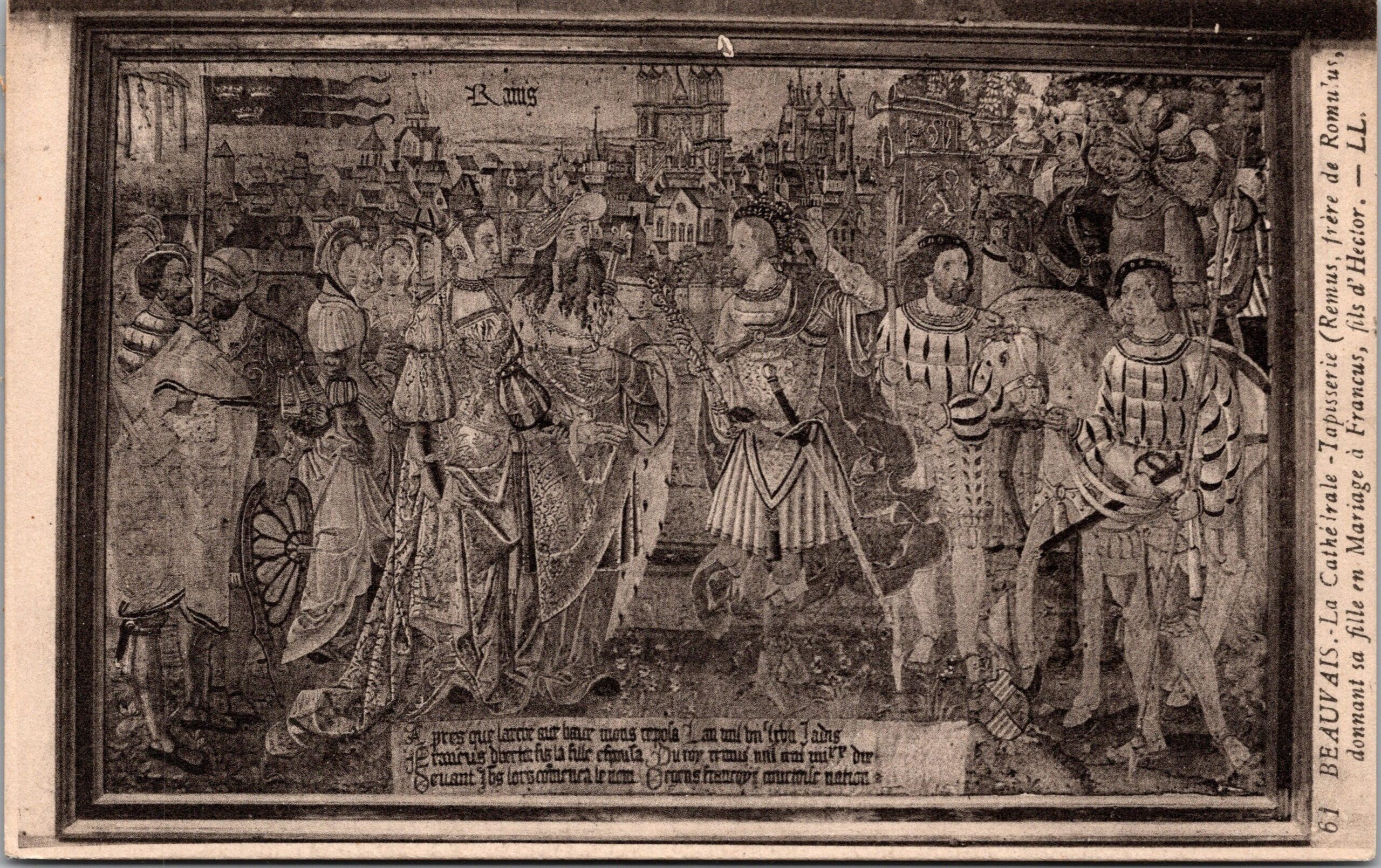 61 beauvais la cathédrale tapisserie remus frère de romulus donnant sa fille en mariage à francus fils d’Hector