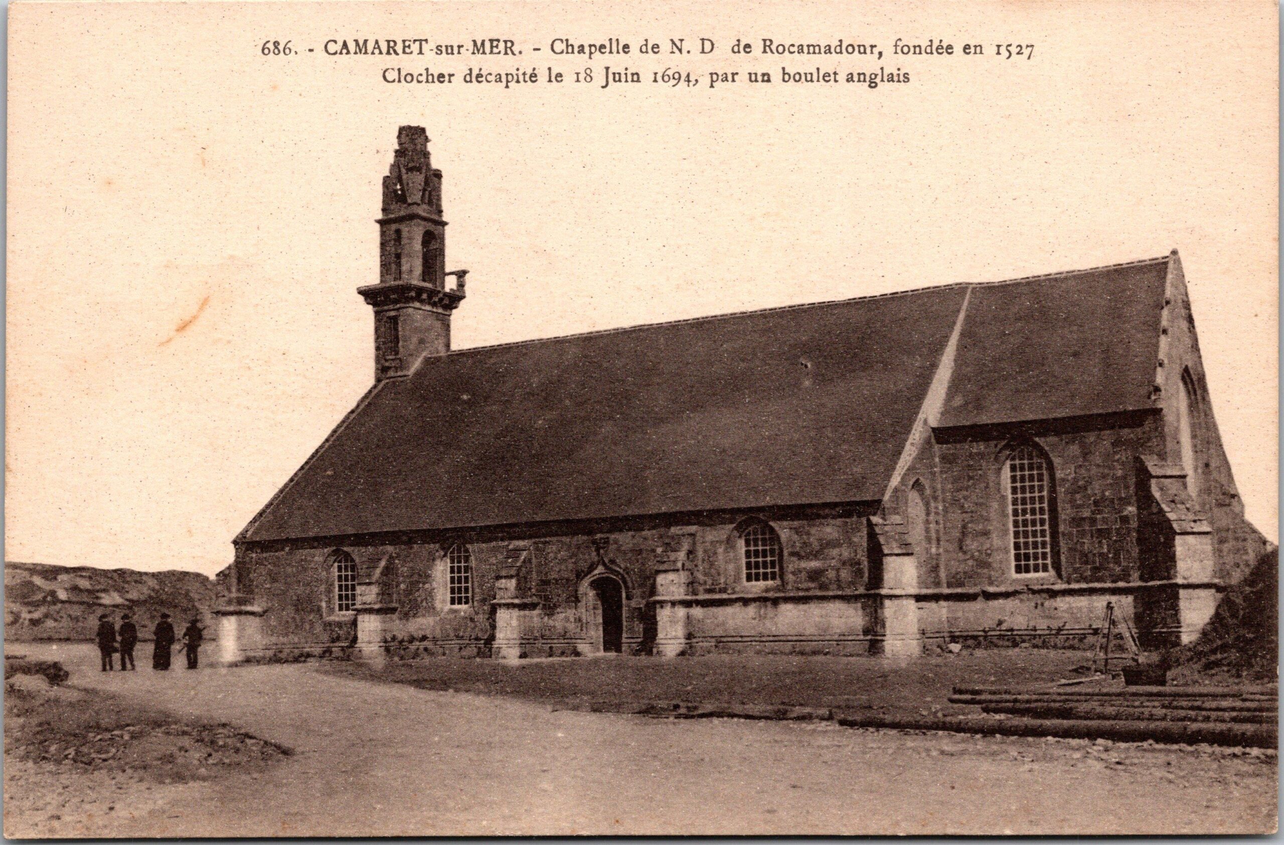 686 CAMARET-sur-MER Chapelle de Notre Dame de Rocamadour, fondée en 1527. Clocher décapité le 18 Juin 1694, par un boulet anglais