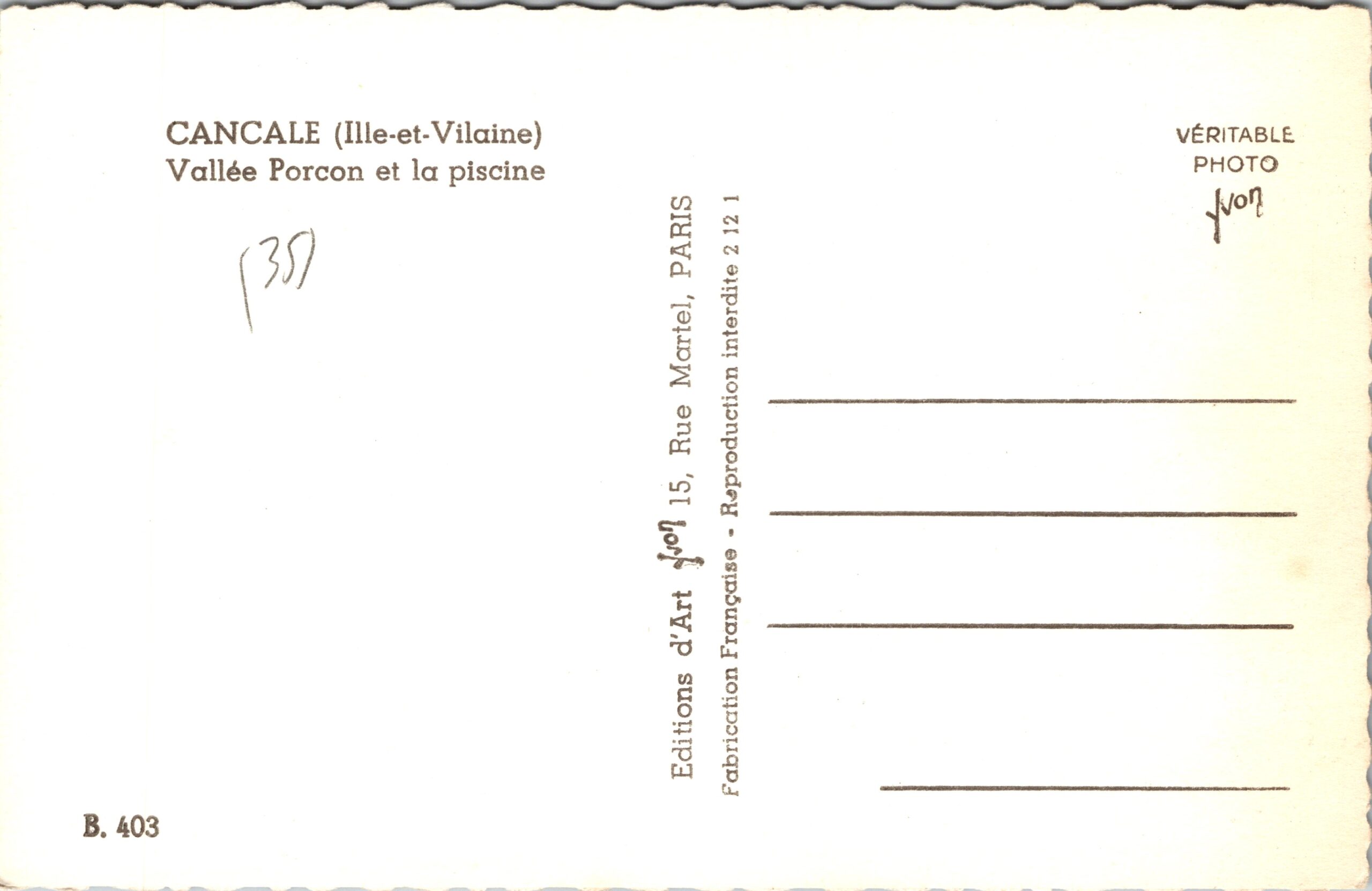 quantité de Cancale Vallée Porcon et la Piscine